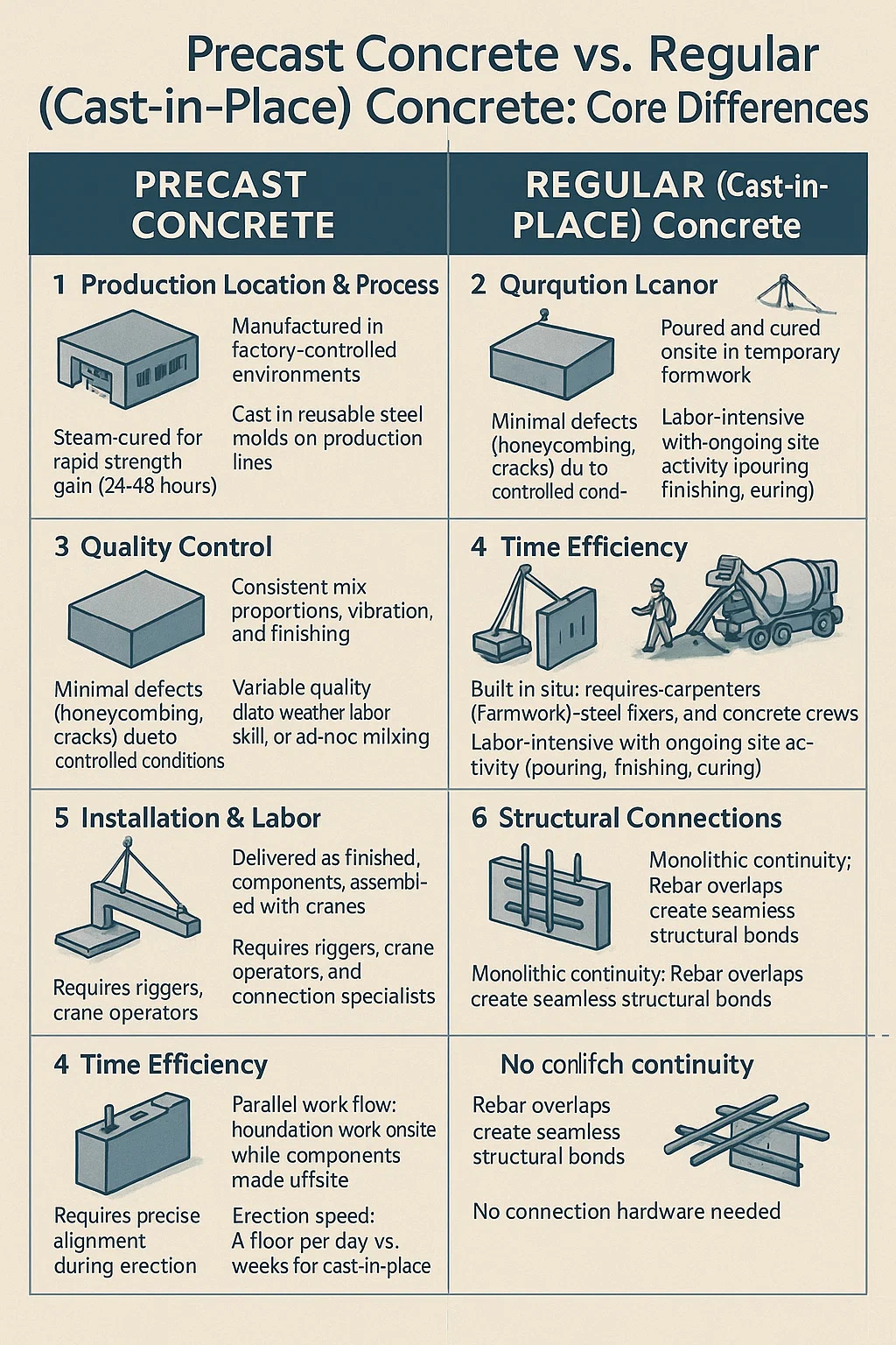 프리캐스트 콘크리트와 일반(현장타설) 콘크리트: 핵심 차이점